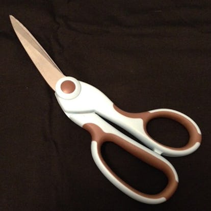 Todo lo que necesitas son unas tijeras de tela de calidad. Estos tipos costaban como 17 dólares y se deslizan por la tela. Eso sí, no utilices nunca las tijeras de tela en papel: las embota hasta dejarlas casi inservibles casi de inmediato.
