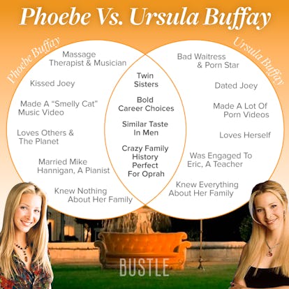 Se sei un fanatico di Friends e un amante di Lisa Kudrow, allora questo diagramma di Venn molto speciale parlerà direttamente alla tua anima. Nella commedia di successo della NBC, andata in onda per 10 anni consecutivi, Lisa Kudrow interpretava Phoebe Buffay, che era eccentrica, odiava la carne (tranne quella volta che era incinta), amava i suoi amici e aveva una famiglia unica. Per tutto il decennio in onda, ha anche interpretato la sorella gemella di Phoebe, Ursula Buffay.